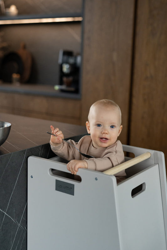 STEP'n'SIT medinis Montessori bokštelis-staliukas, pilkas