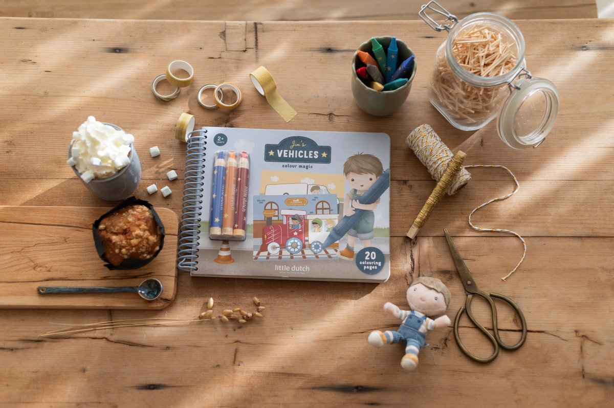 Little Dutch spalvinimo knygelė „Jim ir draugai“ – kūrybiška pramoga vaikams