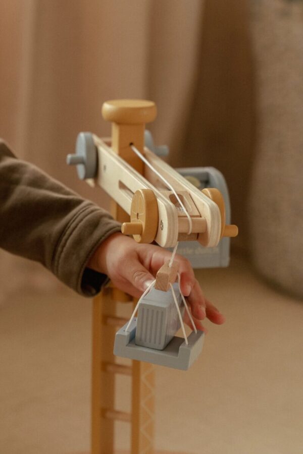 Šis žaislinis kranas ne tik teikia vaikui smagų žaidimą, bet ir skatina kūrybiškumą, problemų sprendimą bei smulkiosios motorikos įgūdžių vystymą. Dėl tvarios FSC medienos ir solidžių konstrukcijų jis taps ilgaamže vaikystės dalimi. Be to, estetinis dizainas ir neutrali spalvų gama leidžia kraną lengvai integruoti į kitus medinius žaislų rinkinius.